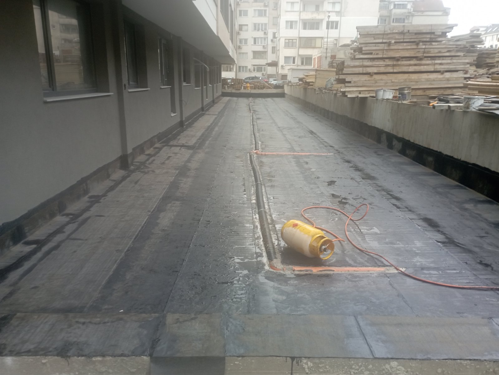 - Полагане на хидроизолационен слой – течни мембрани, битумни системи или PVC/TPO мембрани според спецификацията на проекта, като основно за такъв тип проекти препоръчваме битумната мембрана.
