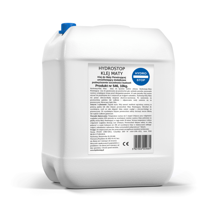 Дисперсно лепило Hydrostop-Klej служи за залепване на съединенията на кристализиращата хидроизолационна мембрана, като позволява залепването на кръпки в местата с липси, както и се използва за грундиране на повърхността на мембраната, когато е необходимо да се монтира топлоизолационен слой към стената преди засипване с пръст. При необходимост, лепилото може да се използва и за залепване на кръпки върху местата след демонтиране на кофражните анкери.