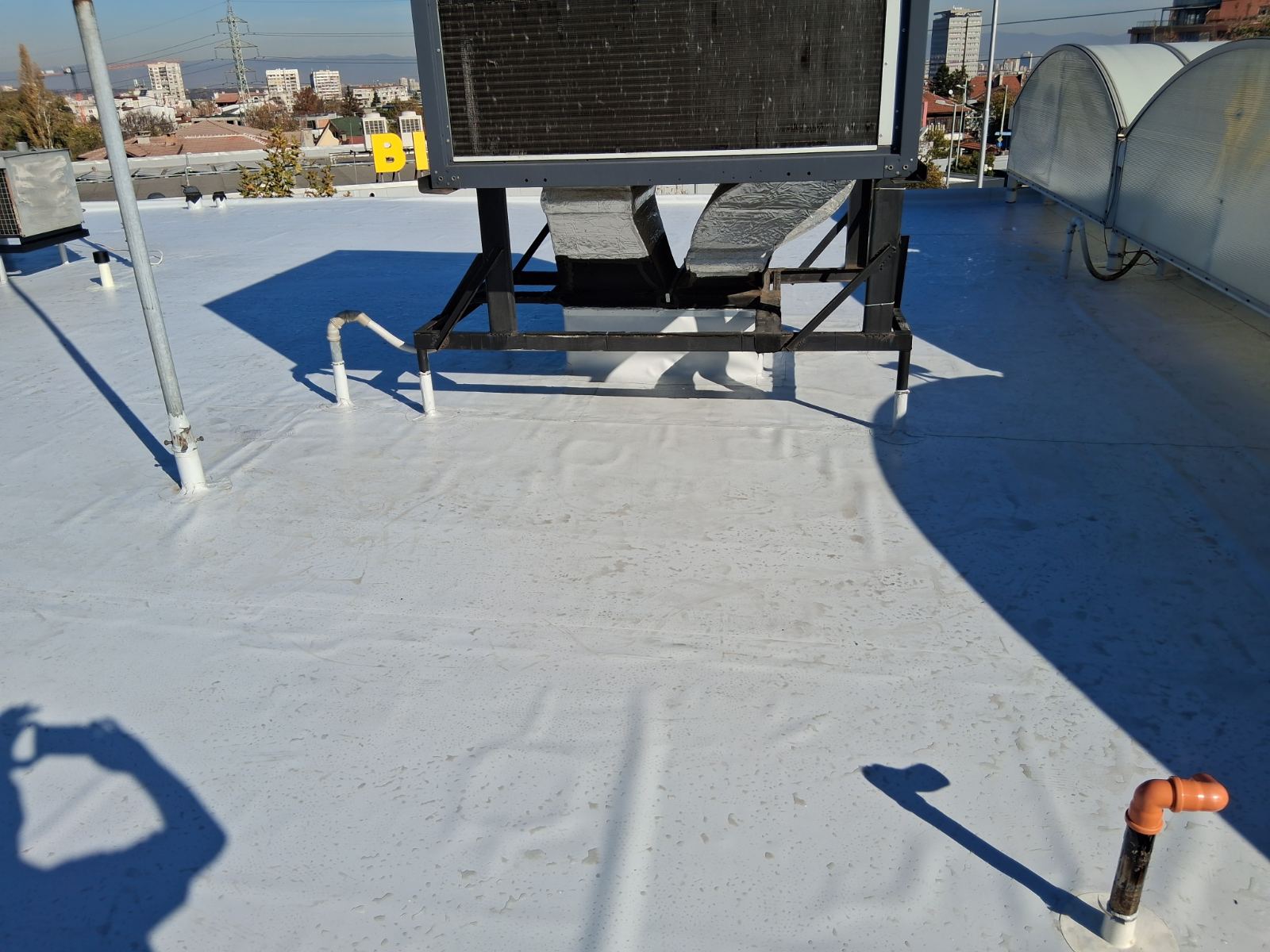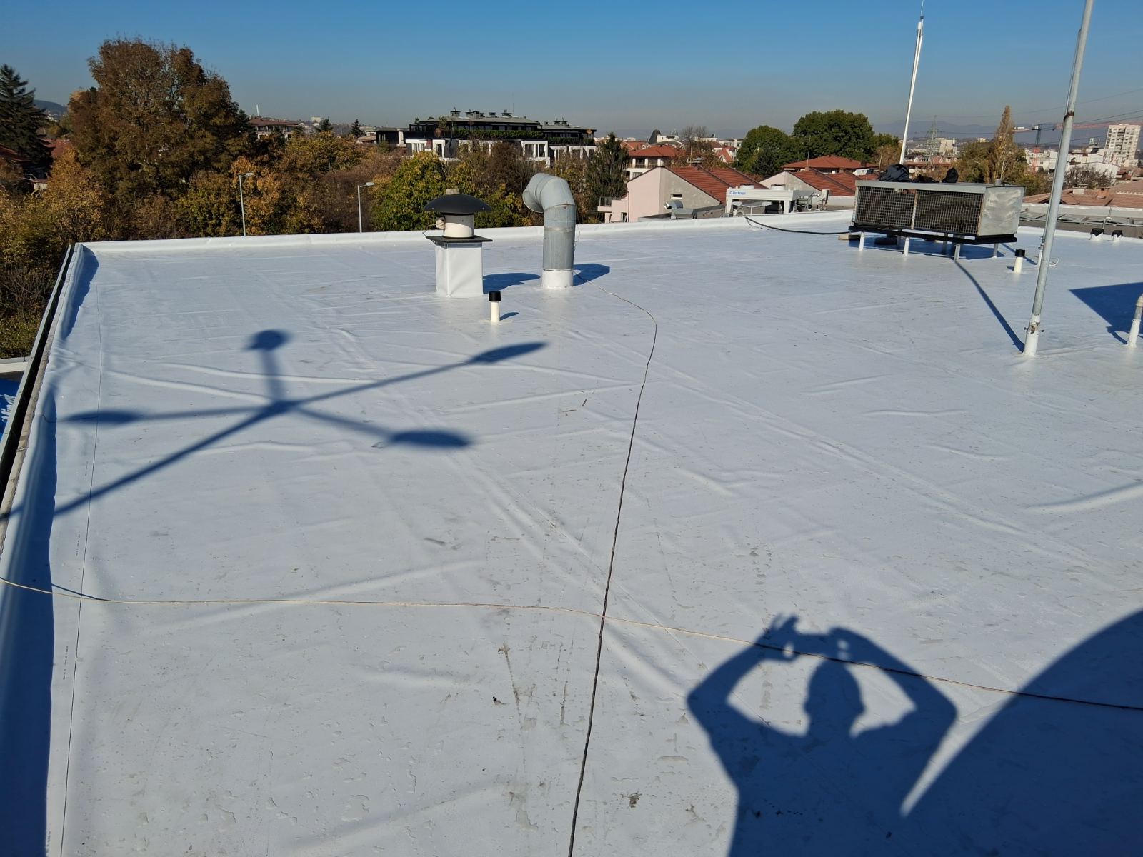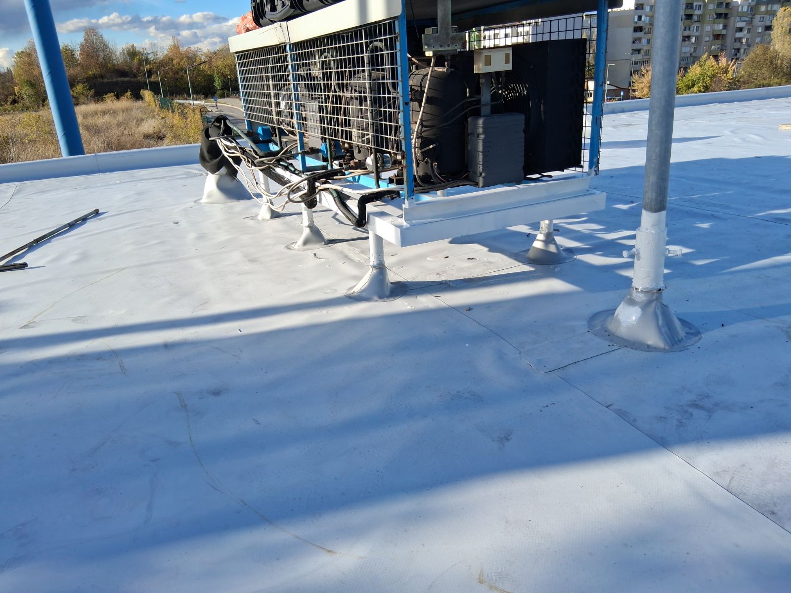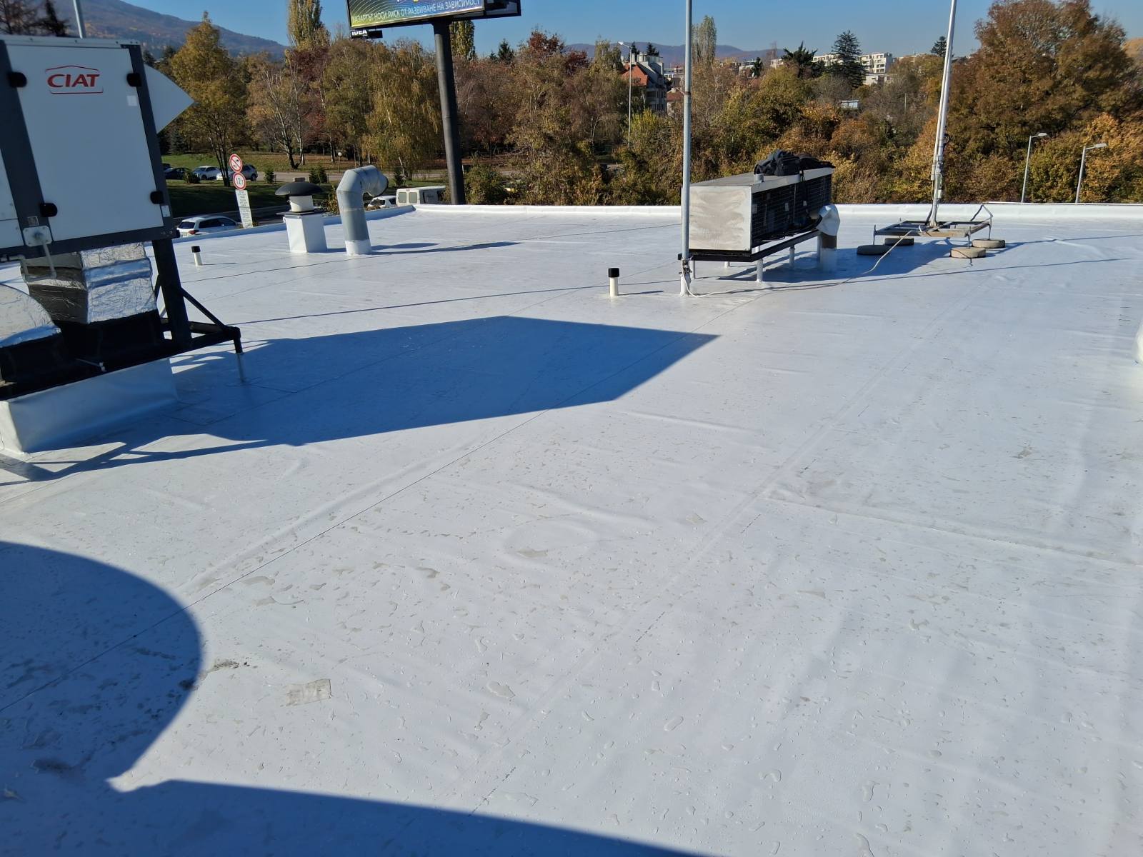 Плоските покриви на бизнес сградите са подложени на постоянно натоварване – атмосферни влияния, температурни амплитуди, оборудване по покрива и интензивна експлоатация. При компрометирана хидроизолация рискът не е само конструктивен, а и финансов: течове в търговски или производствени площи водят до щети по стоки, техника, интериор и прекъсване на дейността.