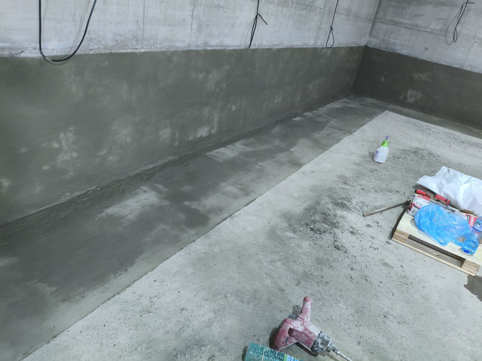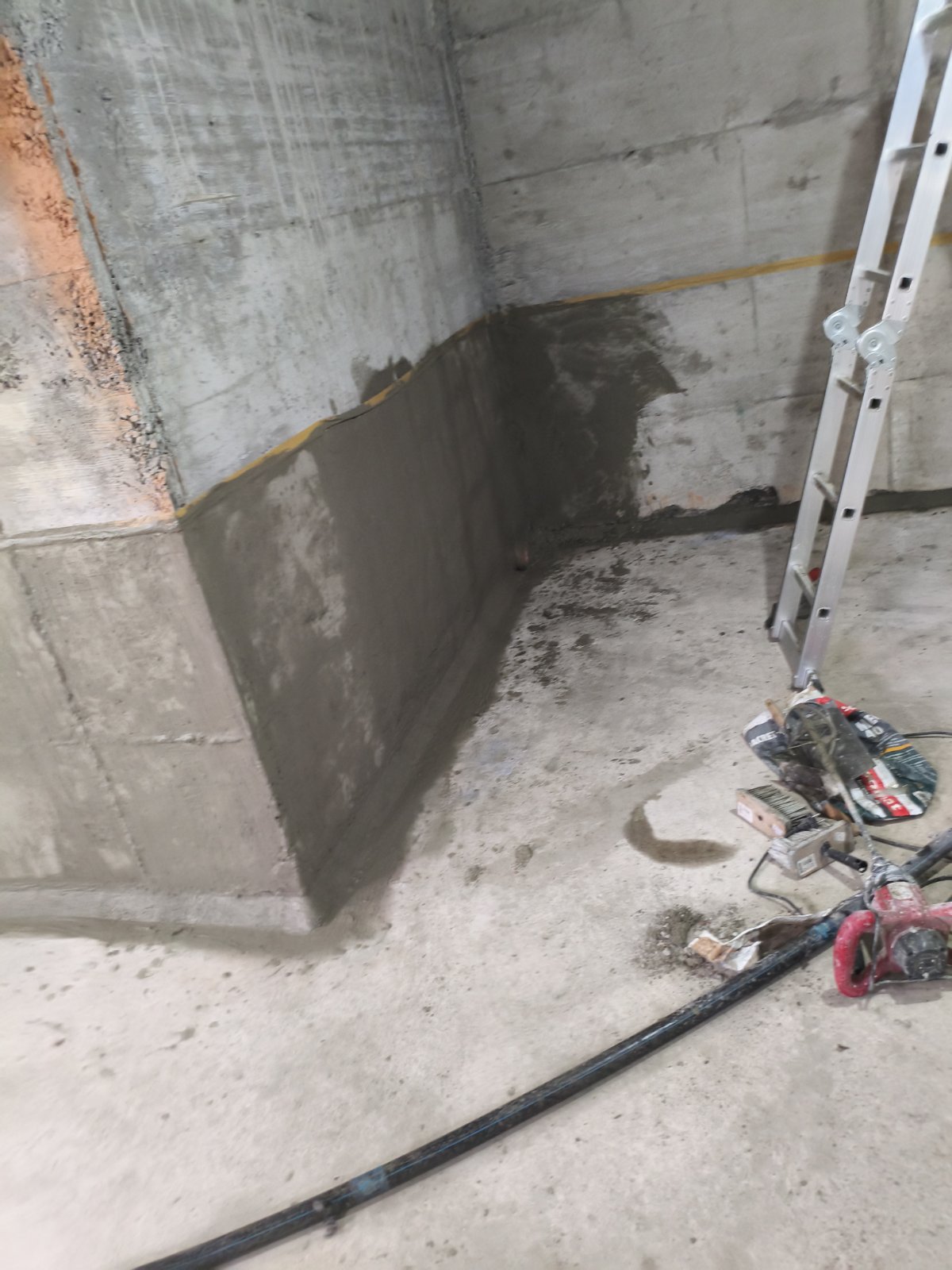 2. Хидроизолация на работни фуги и ъгли: Най-критичните зони – връзките „под-стена“ и „стена-стена“ – бяха обработени със специализирани материали с висока еластичност и адхезия.